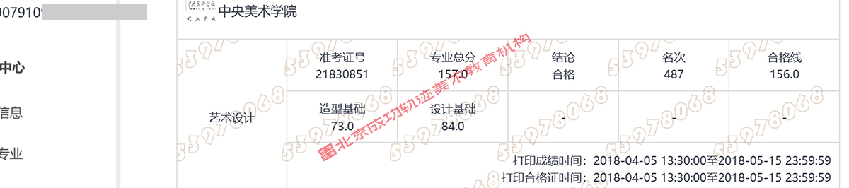 中央美術學院藝術設計第487名