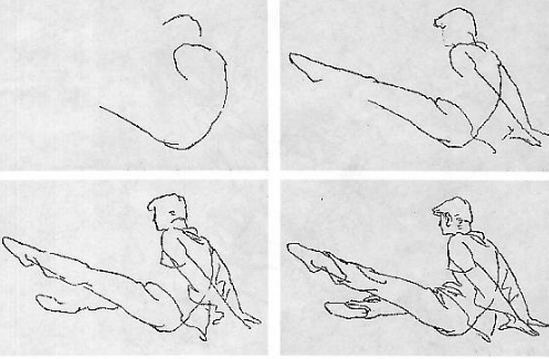 首先,要根據表現對象的運動特點,選擇典型的動作瞬間,并且能夠用大長線條迅速勾勒出對象的主動態線和輔動態線,比如兩肩傾斜線、四肢動勢線等,這一部分相當于先支一個骨架,便于后面添加血肉。