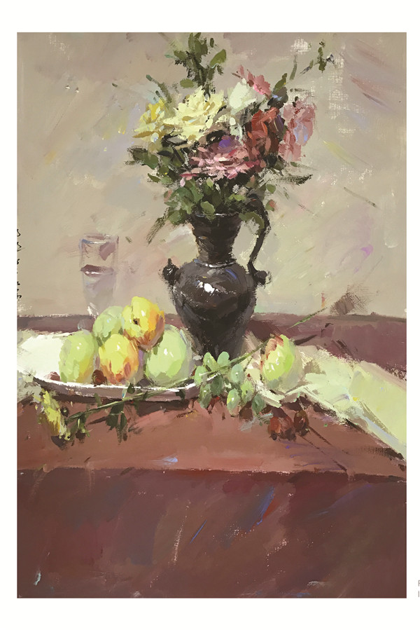 圓形構圖就是讓靜物在畫面中央形成一個圓圈。它在視覺上給人以旋轉、運動和收縮的審美效果并且不會有松散感,但是這種構圖,活力不足,缺乏沖擊感。