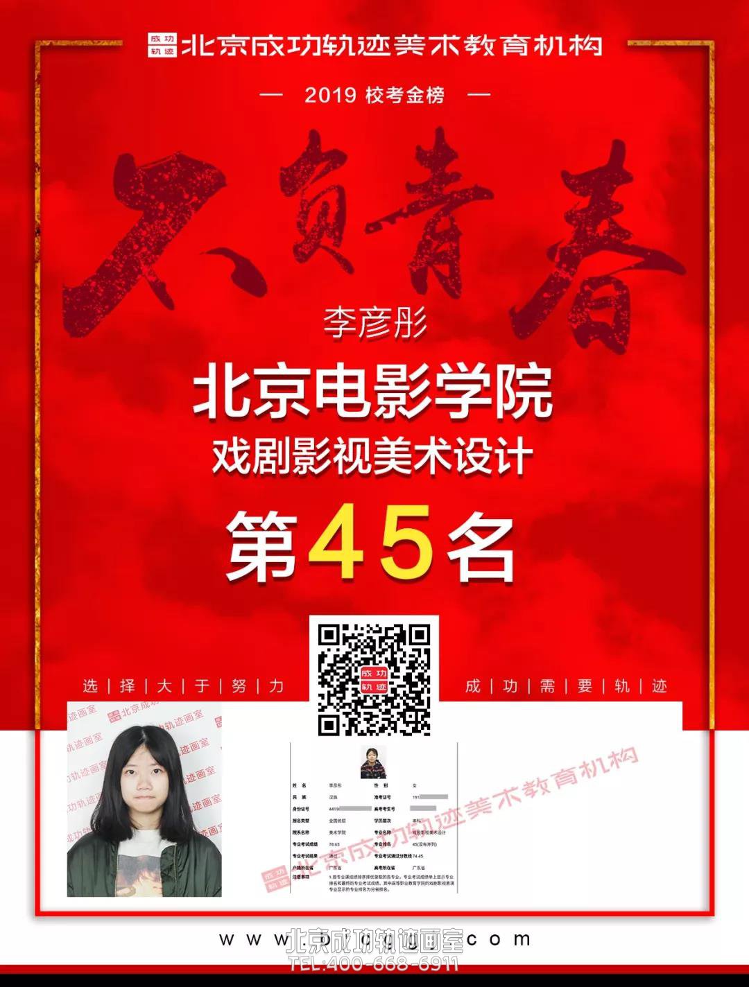 通過報錄比的數值我們可以看出2019年上海戲劇學院的錄取難度是最大的,其次是北京電影學院的美術學院。雖然中國戲曲學院沒有公布2019年美術類專業報考人數但在2018年國曲的美術類報錄比為107:1,競爭激烈如此的影視類院校的美術專業,同學們,你們千萬別慌,有成功軌跡金牌影視類院校教學體系為你保駕護航,下面重點看。