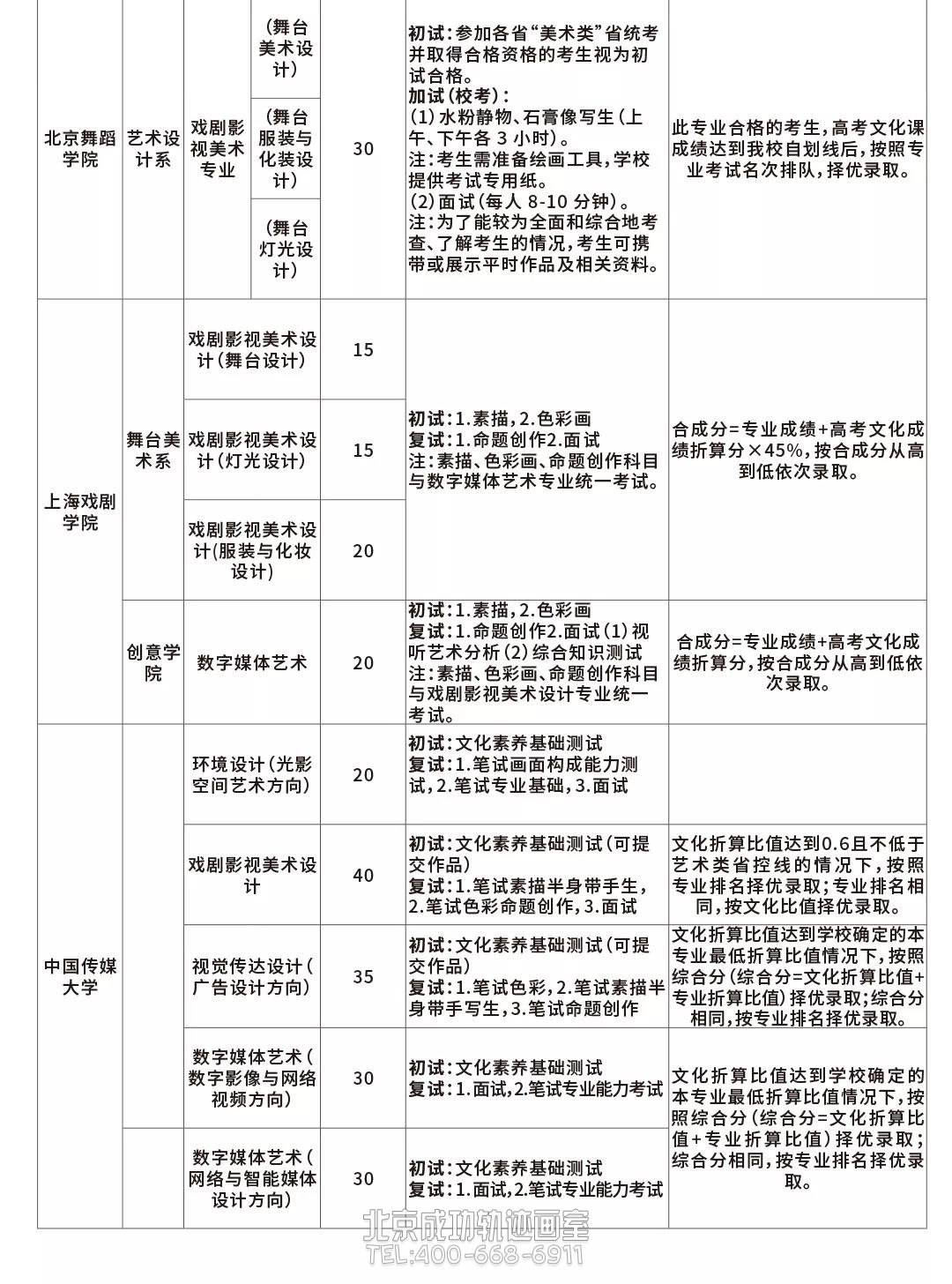 注:以上三所院校的各個專業介紹幾乎涵蓋了所有影視類院校的專業,因篇幅有限,不再重復介紹。
