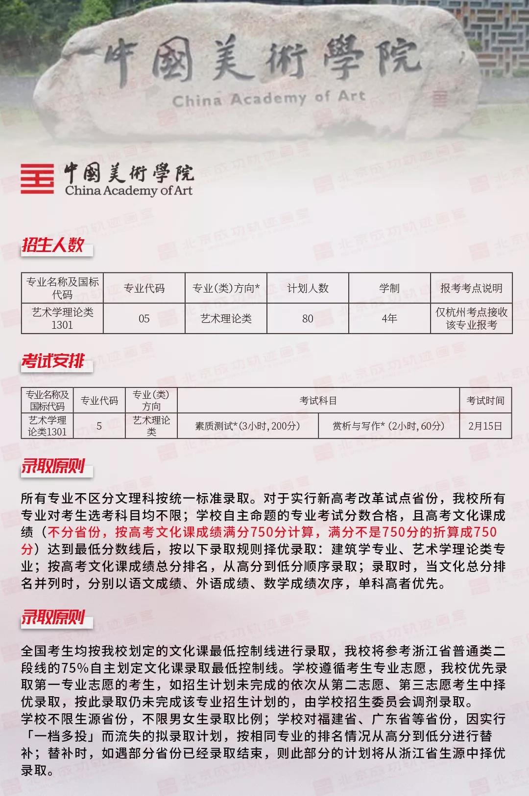 取消“藝術學理論(美術學、藝術設計學、藝術史論、藝術管理)”專業校考凡報考“藝術學理論類”各專業的考生須參加所在省相應類別統考且成績合格,如沒有相應類別統考,須參加各省美術類統考且成績合格,按照文化課成績擇優錄取。