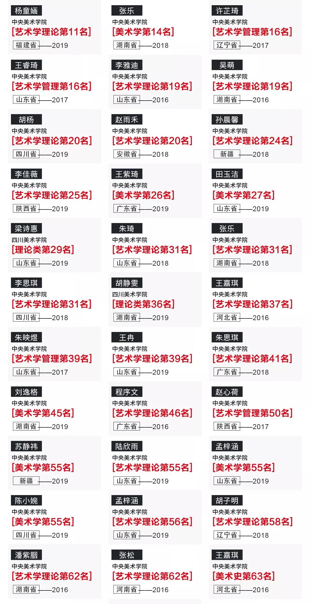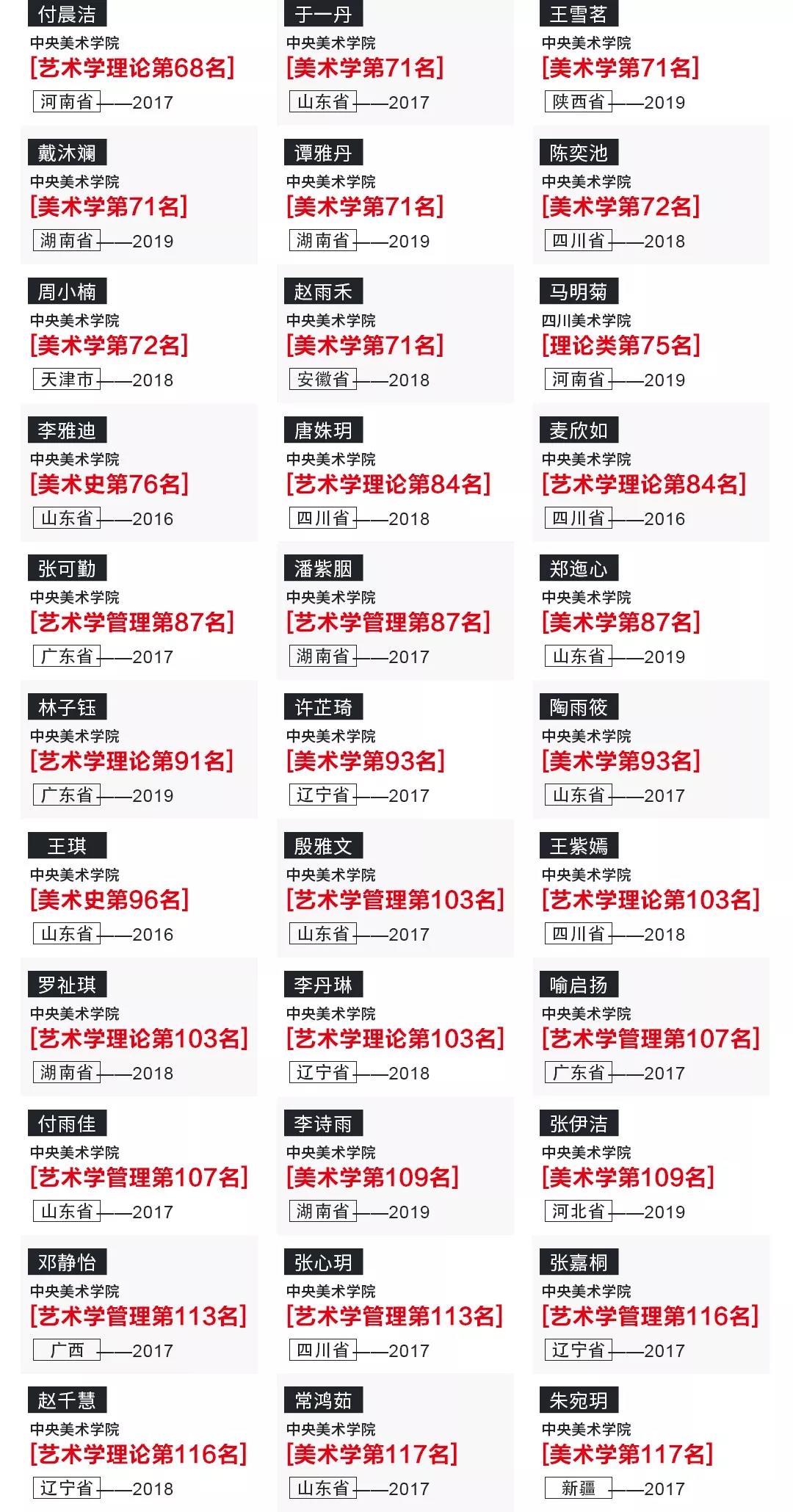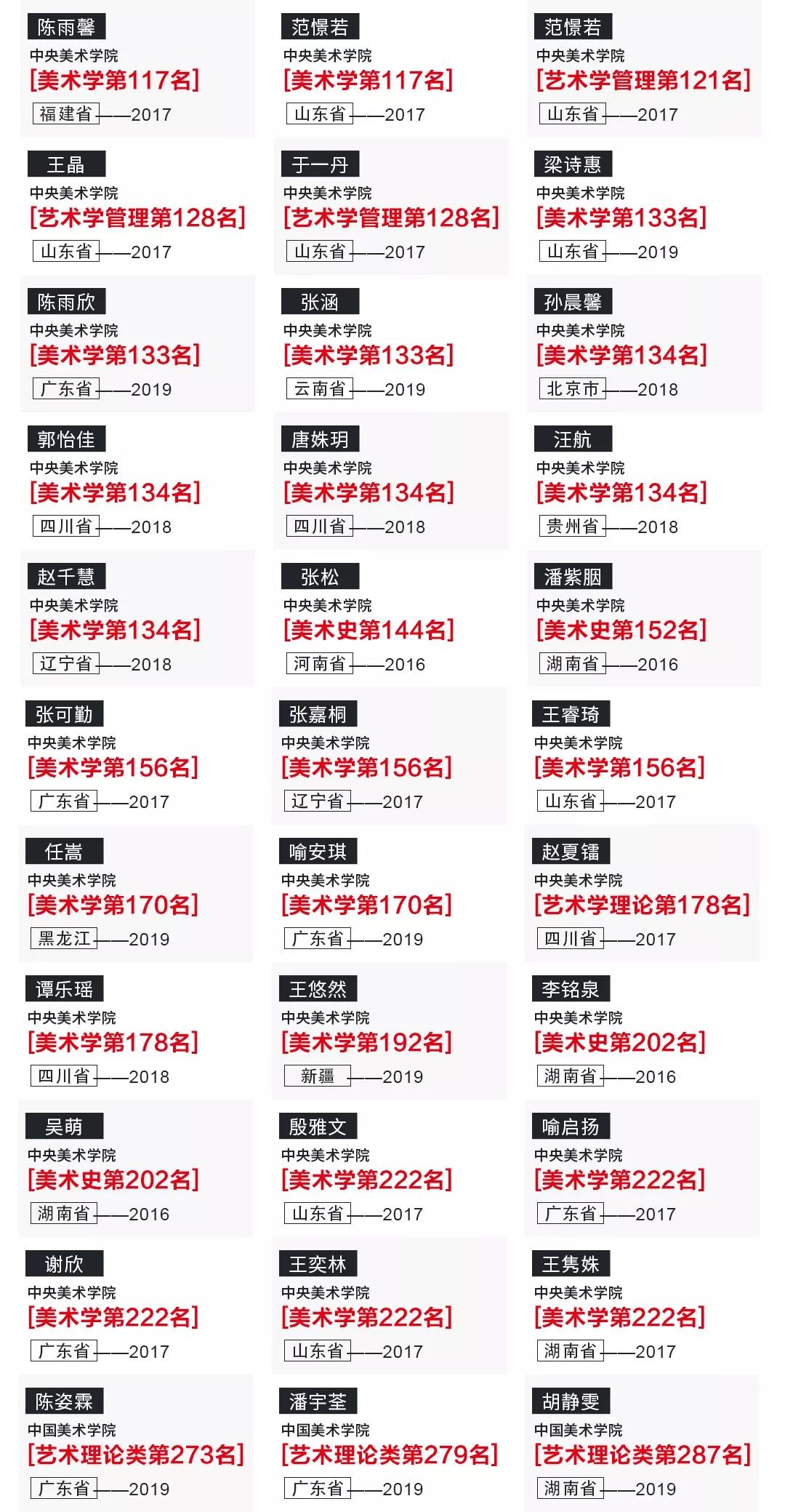 500以上:清華美院、中央美院、中國美院、中國人民大學;