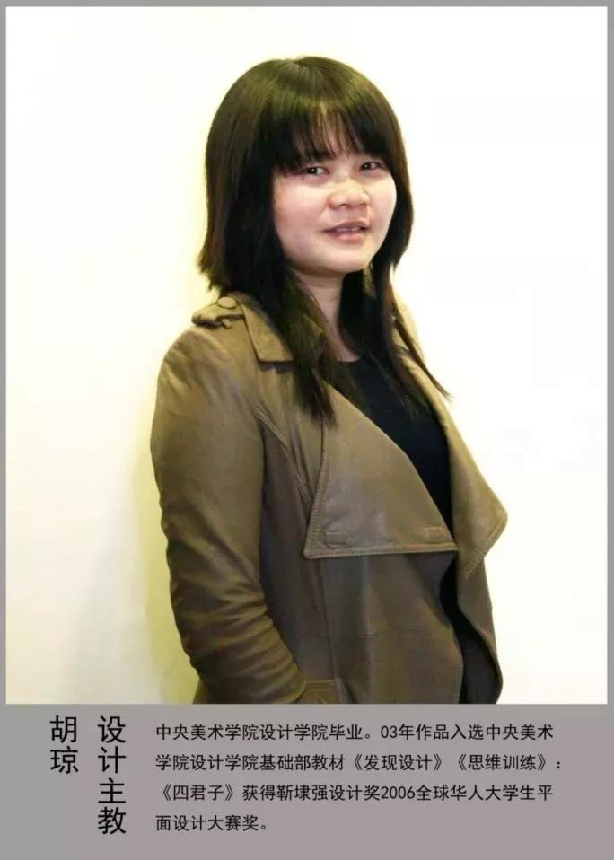 胡瓊,株洲市第八中學2002屆127班畢業生,以優異成績考入中央美術學院,于2005年在中央美術學院學習期間著手成立北京成功軌跡教育培訓機構,在15年內逐步成為國內美術類教培行業領軍者,15年來,奮戰在一線教學,始終致力于美術教育培訓工作,每年為各大美術類院校、綜合類院校源源不斷的輸送優質復合型人才,去年株洲八中考入中央美術學院的學生鄧婕也是她的學生。曾擔任北京校區清華、央美設計主管、國內美術高考規劃指導師、完美教學名師評委、十多年美術高考培訓經驗,在此期間多次受邀在北京及地方學校進行美術高考講座及設計教學。參與出版書籍2014、2017版完美教學《設計素描》和《設計色彩》等暢銷書籍。