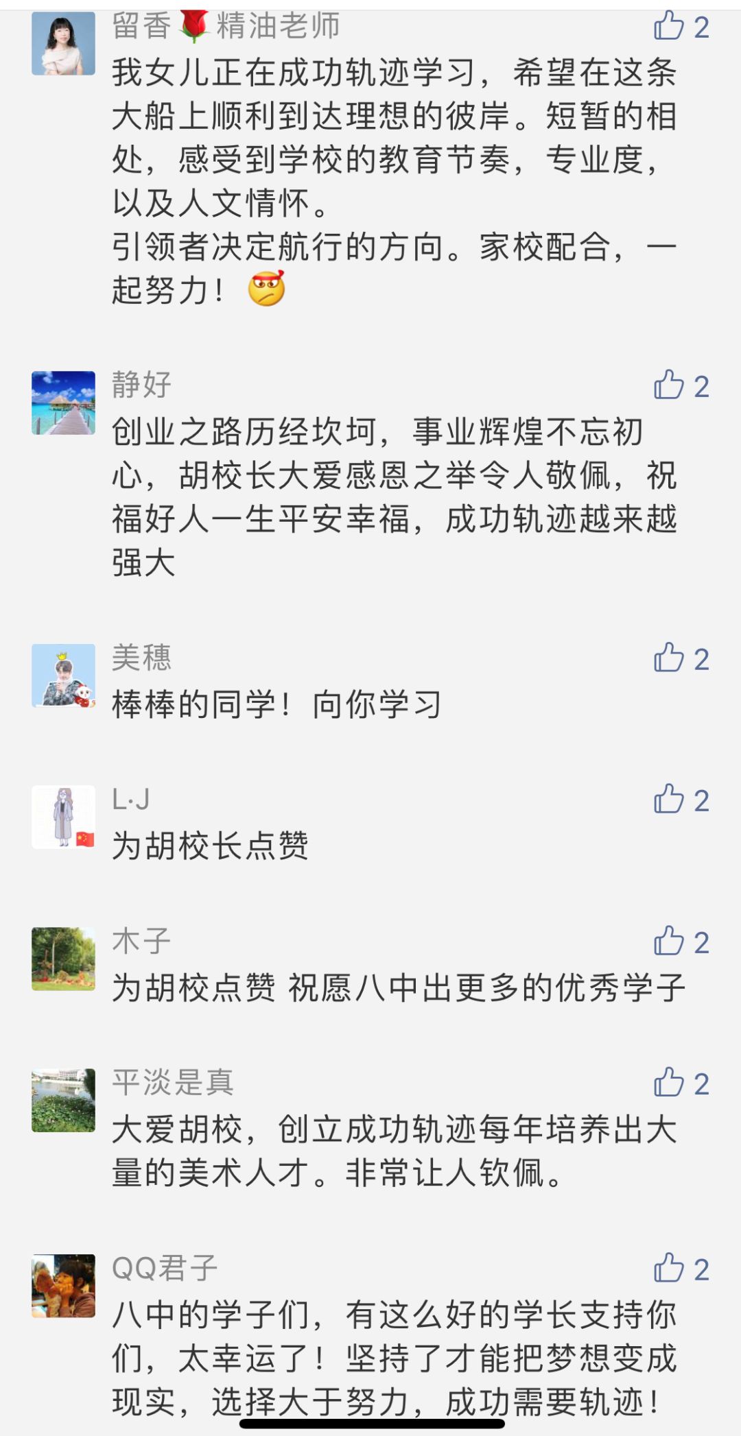 據胡瓊同學回憶說:當時在她提出要上中央美術學院的時候,同學和身邊的朋友,包括她的爸爸在內,都是反對的,他們覺得中央美術學院很難考,但是當時她強迫自己不去想這些,認為只要敢去做、敢去嘗試,就離目標不遠了!班主任黃玉濤老師也鼓勵她,去試試吧,成功的人肯定是做別人不敢嘗試的東西,因為他們不甘于庸庸碌碌的過完這一輩子。若不是八中老師們的鼓勵,她可能現在也會泯然于眾,更不會有現在的成功軌跡了。