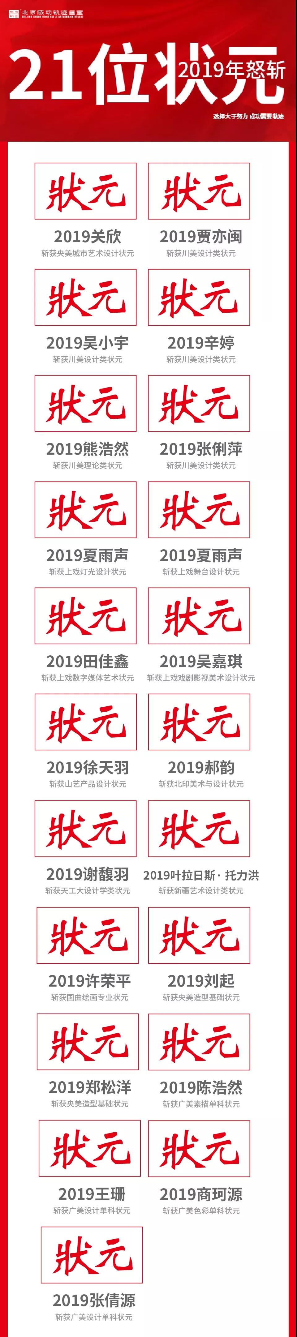 2019年,成功軌跡共斬獲全國各大院校1171張合格證,其中包括21名狀元!
