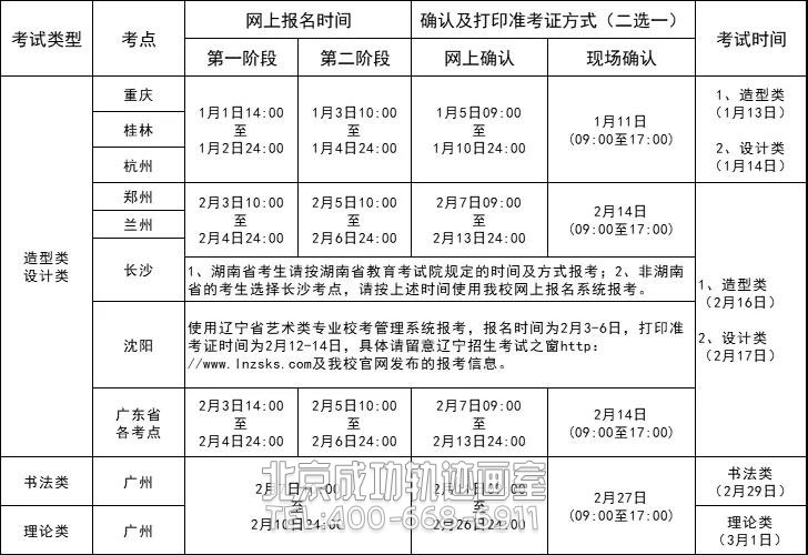 注:①我校分兩階段進行網上報名:第一階段,每位考生僅可選擇“造型類”或“設計類”其中之一進行報名;第二階段,如考點容量未滿,考生即可兼報另一種類別。