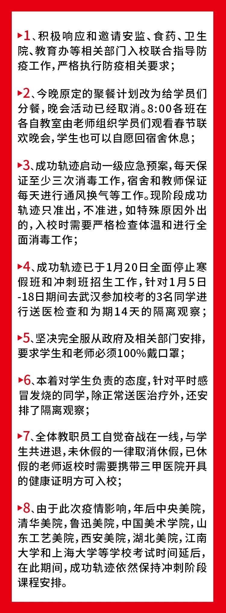 大家也不要產生恐慌,不要造謠傳謠。留在校內專注央美清華等校考課程學習,專心備考,師生攜手共度這段非常時期,同時感謝各位家長對畫室工作的理解和支持。
