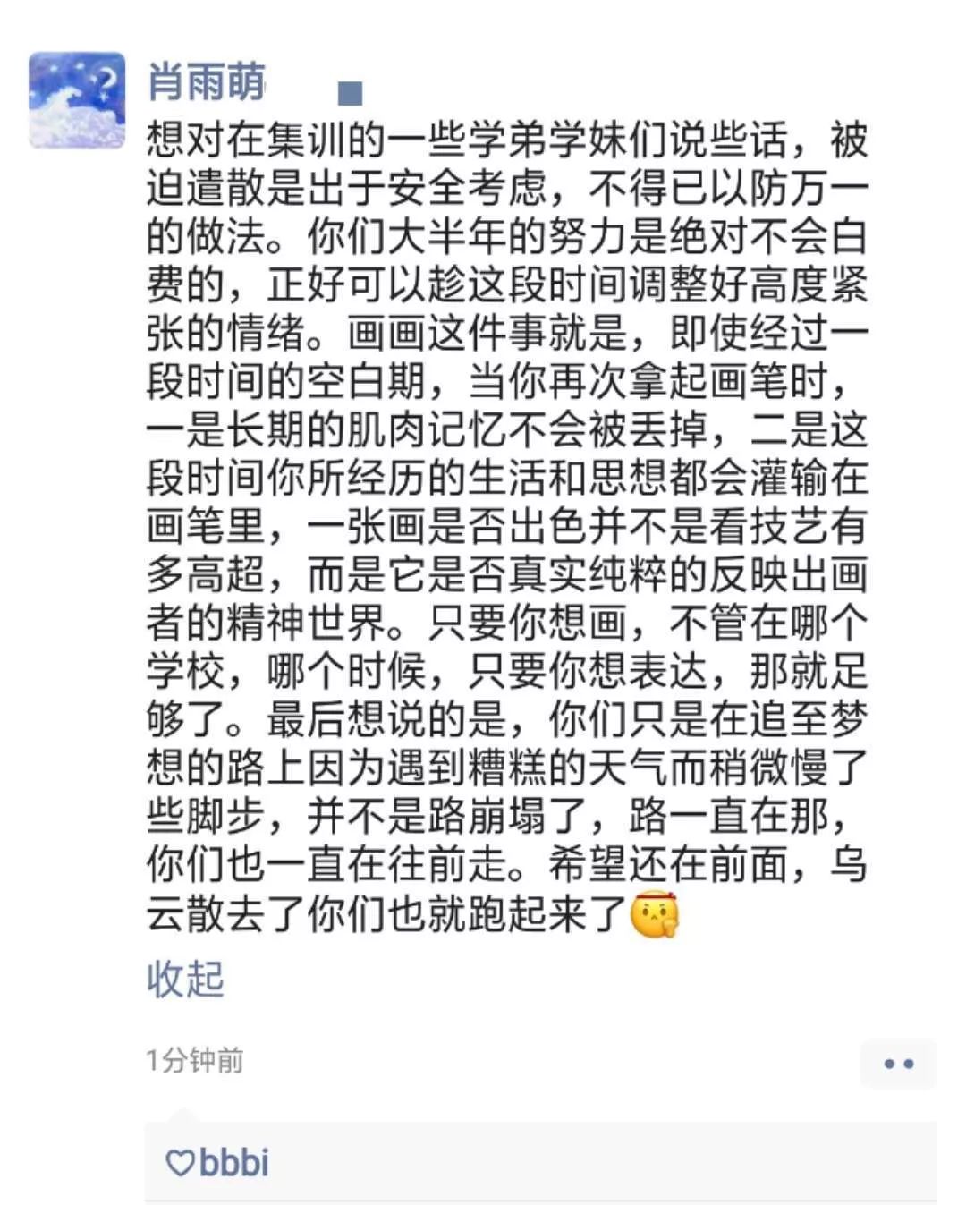 畫室會第一時間發布通知,召集同學們返校