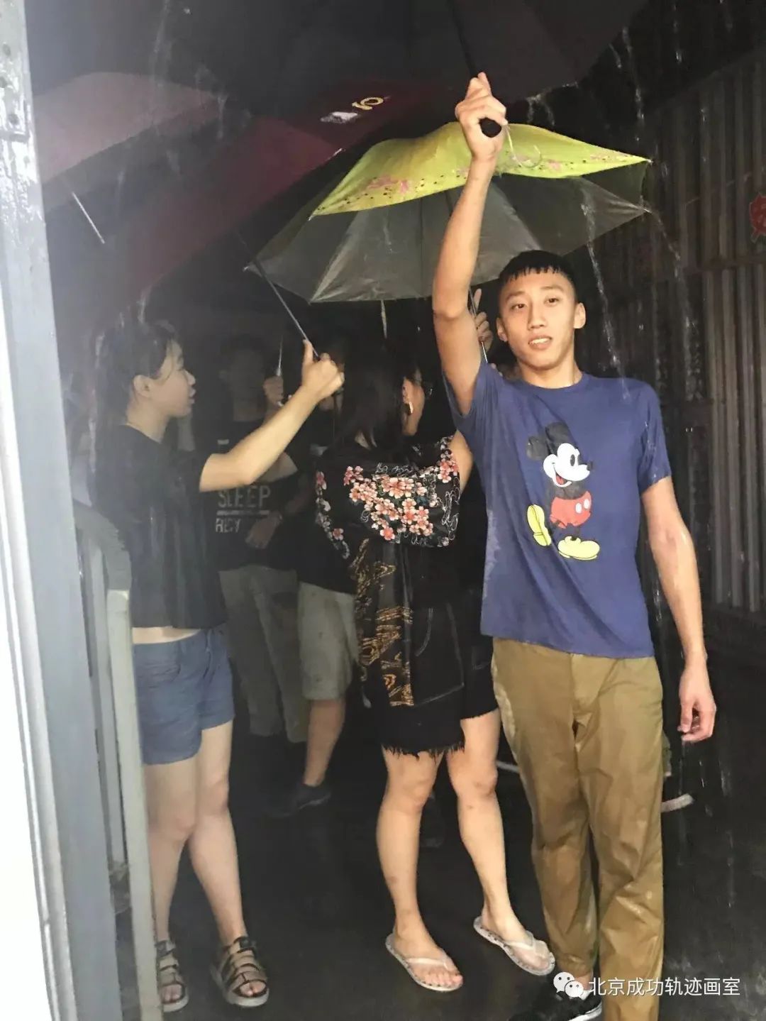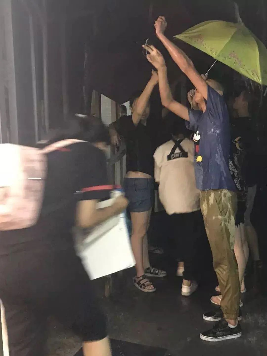 在環鐵校區,部分同學自發組成”傘廊”以幫助其他人通過