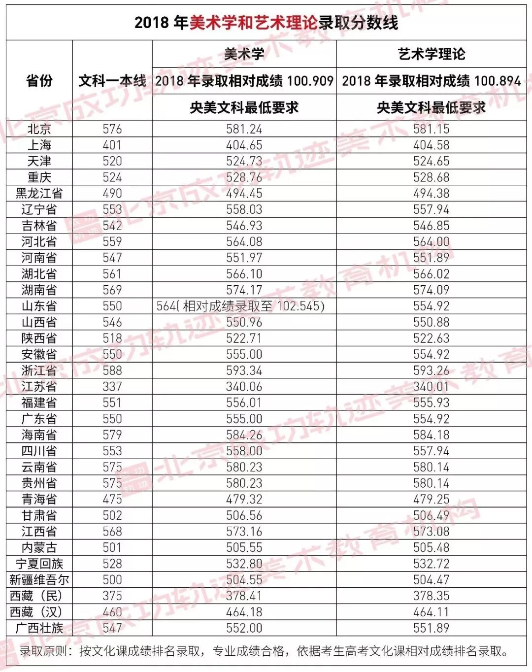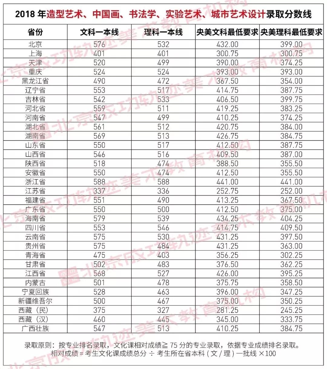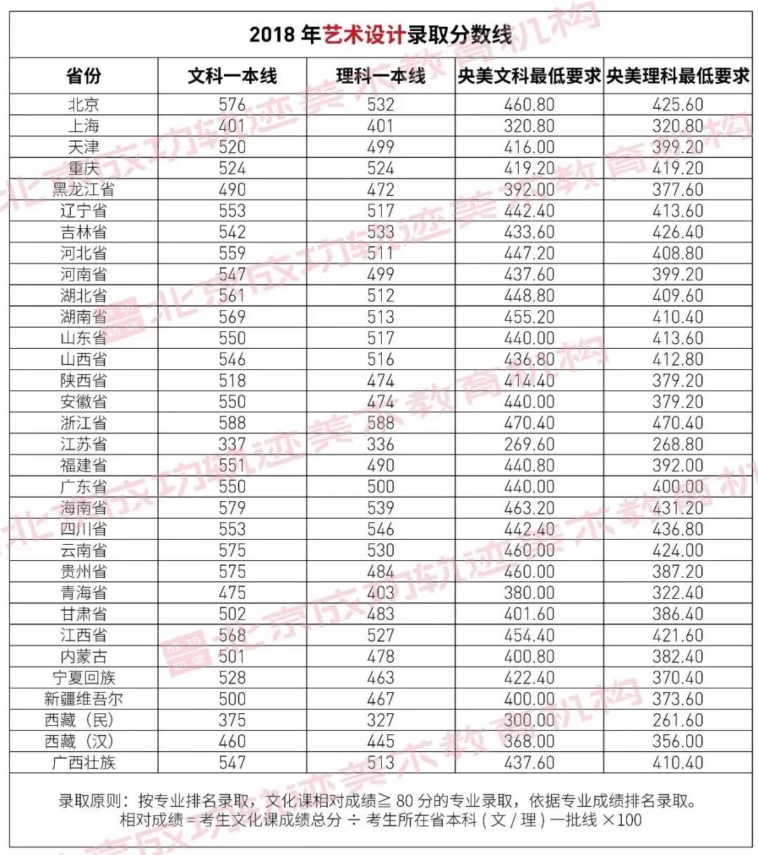 注:以上數據是根據中央美術學院出具的招生錄取標準計算得出,僅供參考。