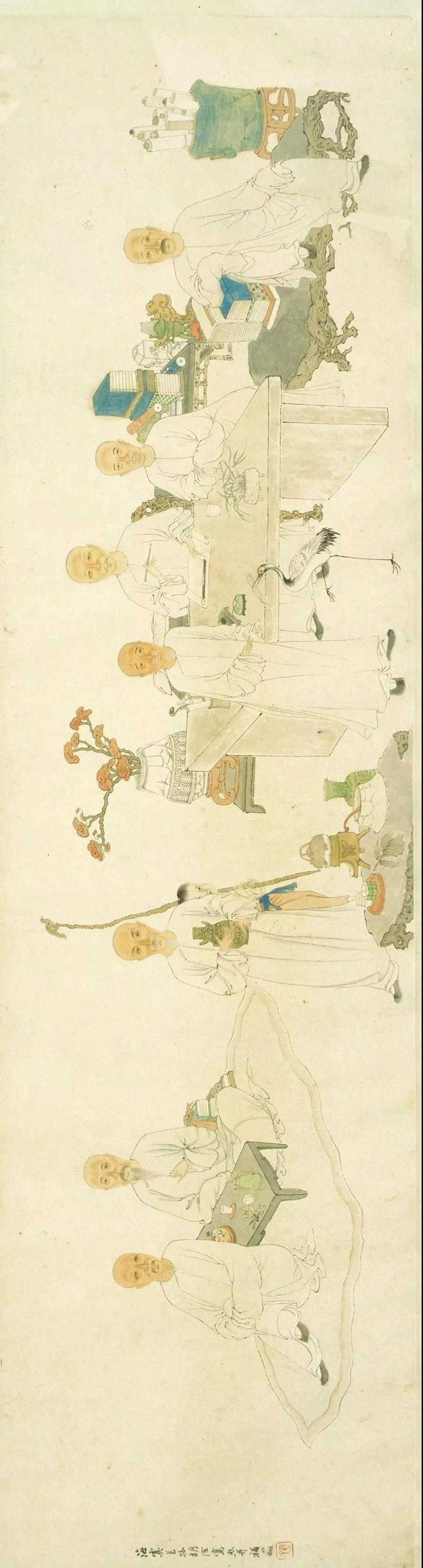 2017年11月在北京畫(huà)院展出的清代肖像畫(huà)《吳中七老圖》引起了筆者的好奇心。該畫(huà)原藏于南京博物院,由大收藏家潘達(dá)于所贈(zèng)。清代肖像畫(huà)呈現(xiàn)出多元化的特征,且有精細(xì)的分工,既有善繪頭像者,也有善繪衣冠者。當(dāng)時(shí)群體肖像畫(huà)也頗受歡迎,但存世并不多見(jiàn)。而這幅畫(huà)的作者在歷史上的記載寥寥無(wú)幾。相比于清代其他的肖像寫(xiě)真,畫(huà)者技藝不算精湛,但勝在設(shè)色淡雅。人物雖多,但構(gòu)圖、布景卻錯(cuò)落有致,倒也令人耳目一新。其中所繪七個(gè)人物均為當(dāng)時(shí)社會(huì)名流,那么吳中七老分別是誰(shuí)?為什么會(huì)有這樣一幅作品傳世?畫(huà)者何以名不見(jiàn)經(jīng)傳?而這七老和真率會(huì)有何關(guān)系?追溯畫(huà)中七人的生平是否可以找到畫(huà)者更多的個(gè)人信息?本文將《吳中七老圖》作為研究對(duì)象,以分析解決以上幾點(diǎn)疑惑。同時(shí),根據(jù)這幅畫(huà)牽引出這個(gè)畫(huà)家的另一幅作品《吳郡真率會(huì)圖》,筆者希望通過(guò)分析這幅作品得到更多關(guān)于畫(huà)家本人及畫(huà)中七老的信息。
