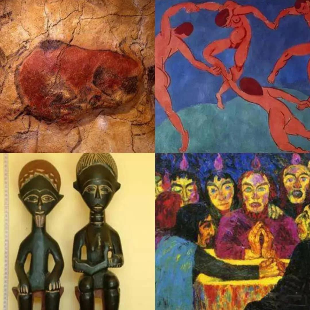 自19世紀(jì)末20世紀(jì)初以來(lái),現(xiàn)代主義繪畫(huà)及雕塑中的原始主義特征屢見(jiàn)不鮮,從后印象派到野獸派,從立體主義到表現(xiàn)主義,再到現(xiàn)代主義雕塑,均可見(jiàn)其蹤跡。高更作品中粗重的輪廓線以及其不甚高明的素描帶有鮮明的原始主義特征,而畢加索的立體主義開(kāi)山之作《亞維農(nóng)的少女》據(jù)說(shuō)受一尊黑色木雕像的啟發(fā),米羅天真如兒童畫(huà)的《哈里昆的狂歡》與史前剪影風(fēng)格的巖畫(huà)如出一轍,以及諾爾德的表現(xiàn)主義手法更是深受非洲原始雕刻的影響,如此等等,可見(jiàn)將原始主義藝術(shù)特征運(yùn)用于現(xiàn)代主義藝術(shù)的的創(chuàng)作中十分常見(jiàn)。在繪畫(huà)理念并不一致的現(xiàn)代主義繪畫(huà)流派中,卻不約而同地體現(xiàn)出對(duì)原始藝術(shù)的借鑒,究竟有何原因呢?這種借鑒又是否是一種藝術(shù)中典型的“拿來(lái)主義”而非真正意義上的創(chuàng)新呢?原始藝術(shù)等同于現(xiàn)代主義藝術(shù)嗎?由現(xiàn)代主義的繼承與創(chuàng)新來(lái)看,自古至今,藝術(shù)似乎不斷在打破既有標(biāo)準(zhǔn)和束縛,藝術(shù)的邊界又在哪里呢?本文主要通過(guò)形式分析、歸納、對(duì)比的方法探究原始繪畫(huà)及雕塑對(duì)現(xiàn)代主義以來(lái)藝術(shù)的影響,對(duì)其背后的原因作出推測(cè),并對(duì)藝術(shù)的發(fā)展與本質(zhì)問(wèn)題作出思考。