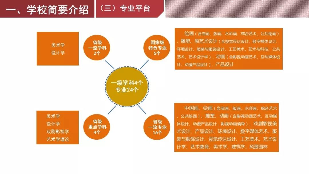學校是國家首批碩士學位授予單位,現(xiàn)有藝術(shù)學理論、戲劇與影視學、美術(shù)學、設(shè)計學4個一級學科碩士學位授權(quán)點(美術(shù)學、設(shè)計學為省級一流學科,藝術(shù)學理論、戲劇與影視學為省級重點學科),有藝術(shù)碩士(MFA)與風景園林碩士(MLA)兩個專業(yè)學位授權(quán)點。現(xiàn)有專兼任教師600余名,本科學生6600余名,研究生近900名。