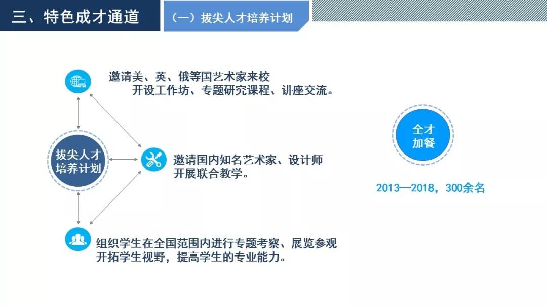 學校建有國家級教學團隊、國家級實驗教學示范中心、國家人才培養(yǎng)模式改革試驗區(qū),國家級動畫產(chǎn)業(yè)基地、國家級大學生校外實踐基地,以及多個省級優(yōu)質(zhì)教育教學和科學研究平臺,有健全的獎、勤、助、貸等學生資助體系,實施了“拔尖人才培養(yǎng)計劃”、“特色工作室計劃”、“微型企業(yè)孵化計劃”、“青年藝術(shù)家駐留計劃”等國內(nèi)獨具特色的人才培養(yǎng)項目,被評為全國創(chuàng)新創(chuàng)業(yè)教育示范高校、全國創(chuàng)新創(chuàng)業(yè)典型經(jīng)驗高校。
