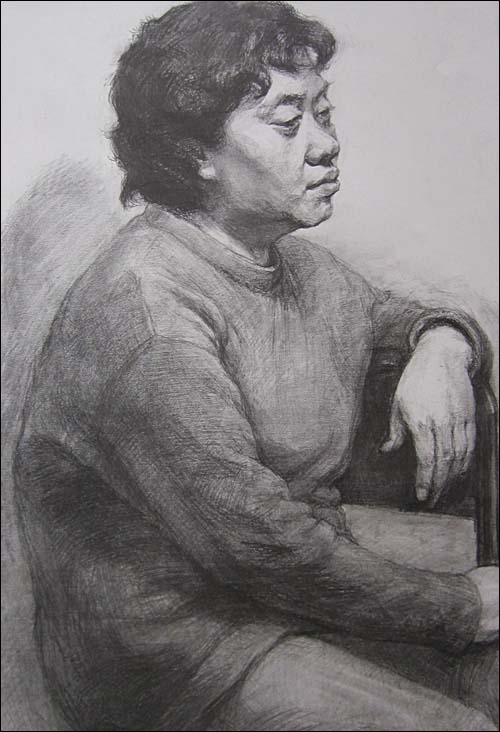 盡管我們強調使用單一、穩(wěn)定及亮度適中的光源作為素描寫生的照明,然而事實上現(xiàn)實的光照條件并非都是合乎要求的。尤其在某些升學的素描考試中,經常是天光及數(shù)個日光燈的光線一齊照在模特身上,如果再想按理想狀況下的畫法處理調子,就可能無法下手。這時我們有兩種處理方法:一,選擇多光源中最強烈的一種光源作為主光源,有意忽略其余光源的光照效果,將調子歸納到主光源的條件下來表現(xiàn);二.從形體結構出發(fā),看形體的高低起伏,主觀地運用一些調子來表達這種高低起伏及轉折。這兩種方法都是在客觀的光照條件基礎上,依據(jù)表現(xiàn)的需要主觀地處理明暗來表現(xiàn)寫生對象的。即使是在理想光照條件下,我們畫明暗素描時,也并非全部照抄客觀明暗,仍要依據(jù)表達的需要,對客觀明暗進行提煉、取舍、強化或削弱,以便獲得最貼切的表達和最完美的效果。明暗調子只是一種造型的手段而不是目的。一切造型的手段都要服從于表達形體結構的需要。況且,光線是可變的,而形體結構卻是不變的。因此,我們可以在造型需要的前提下,大膽地依據(jù)明暗調子的規(guī)律來主觀地處理調子。一幅好的明暗素描應是主客觀調子的完美結合。這一點是我們在學習明暗素描時應當牢記的。
