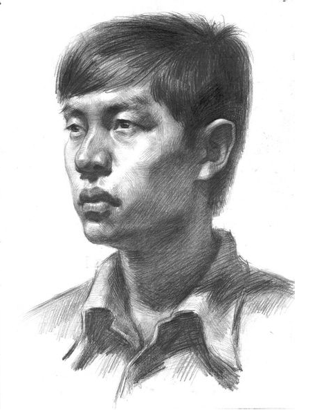 然后,我們就可以按照默寫的步驟來刻畫了。先進行合理構圖,畫出頭像的位置,勾勒出頭部、頸部、肩部的輪廓和關系,然后進一步明確頭部,把明暗關系確定。之后,再進行細節的刻畫,比如五官的比例、面部的特征等等。整個過程一定要保持畫面的統一性,注意整體效果。