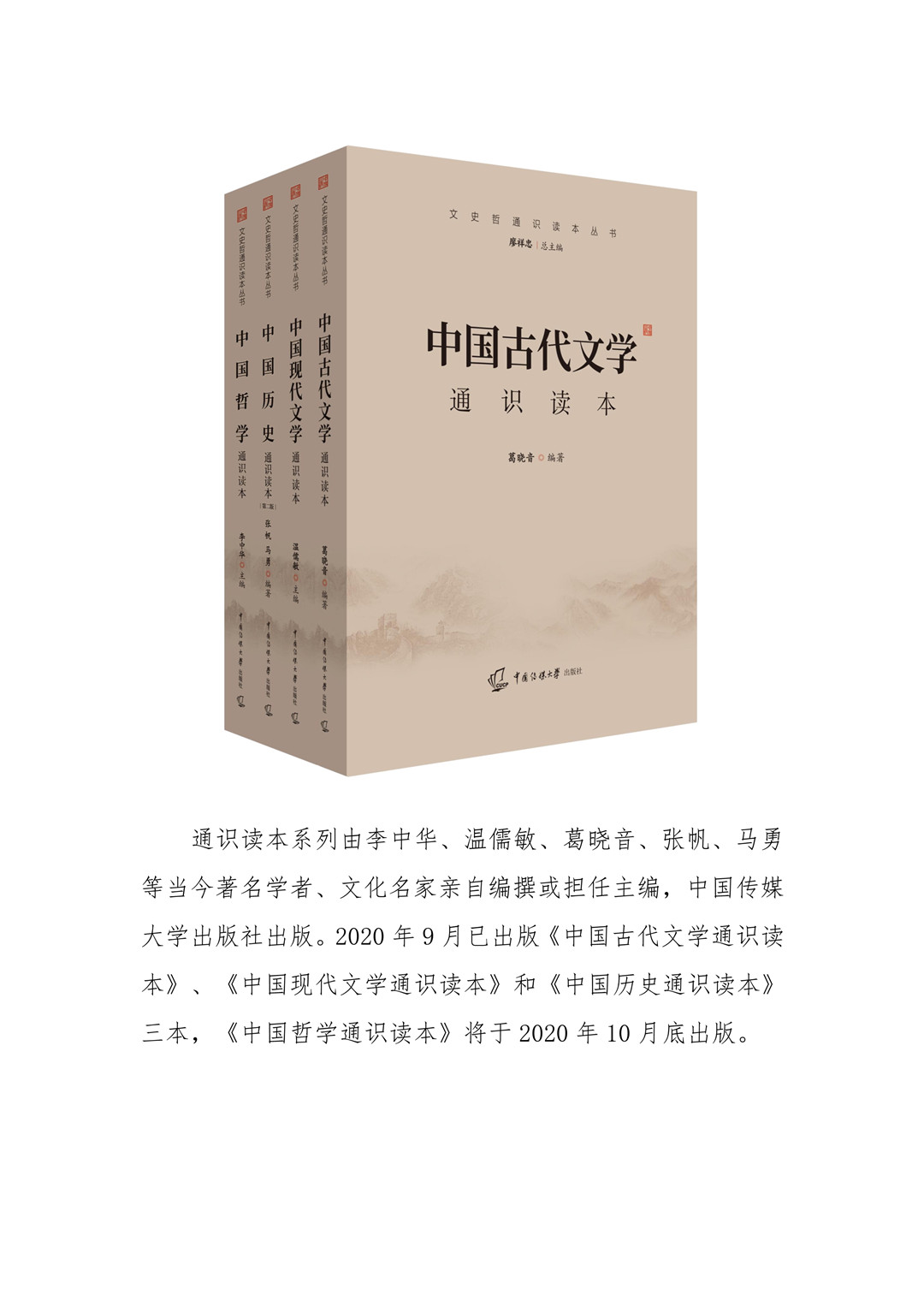 《中國古代文學通識讀本》編著葛曉音教授,系北京大學中文系教授、博士生導師。該書主要著眼于重大的文學現象,基本的典籍和文體、流派知識,以及重要作家作品這三個方面,以歷史的發展為縱向線索,對三方面內容加以綜合,以冀達到通識教育的要求。