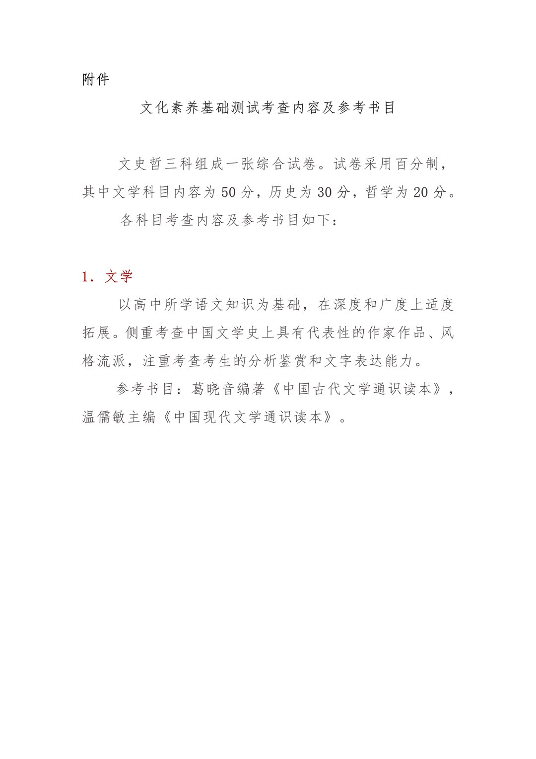 附件:文化素養基礎測試考查內容及參考書目